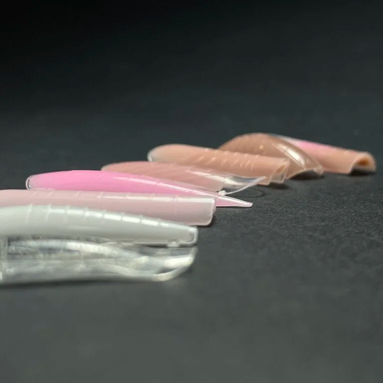 Die Formen sind elastisch, behalten ihre Form gut bei und lassen sich nach der Polymerisation mit jedem Material leicht entfernen. Sie verbiegen sich nicht, wenn die Architektur mit einer Pinzette oder speziellen Zangen zusammengedrückt wird. Sie eignen sich für die Verwendung mit verschiedenen Materialien: Poly-Gel, Acryl-Gel, Builder-Gele und Jelly-Gele. Die verbesserte Form ermöglicht es, die Nagelarchitektur mühelos zu gestalten, selbst für Anfänger im Modellieren.