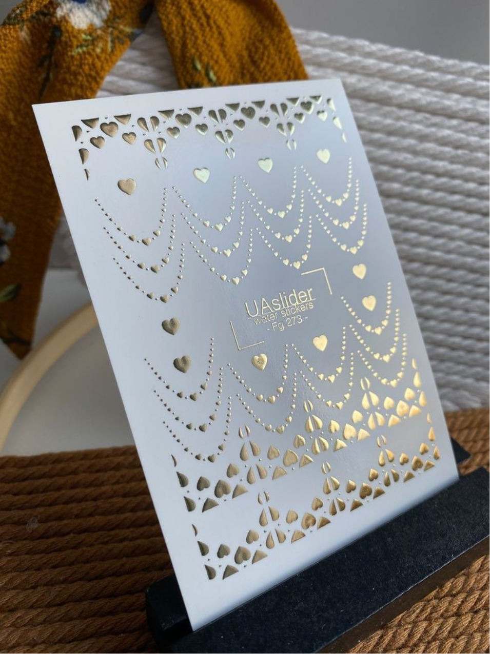 Elegante goldene Herzmuster, kombiniert mit feinen Linien und Ornamenten. Verleihen jedem Design eine edle, feminine Note – perfekt für kreative Nagelstylings.